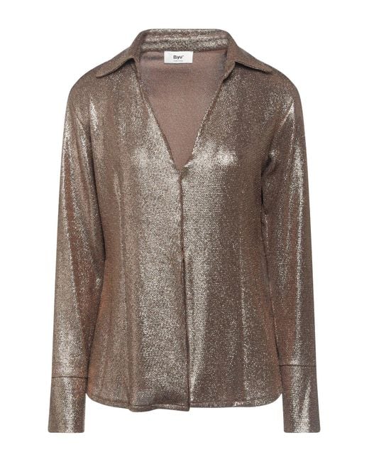 B.YU. top, jersey, metallic, plain colour, no appliqués, classic collar, long sleeves, stretch. 91% Polyamide, 5% Elastane, 4% Metallic fiber.