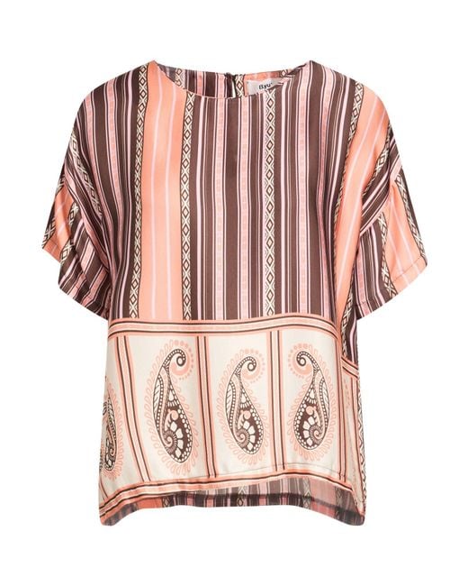 B.YU. top, satin, multicolour, cutout, crewneck, short sleeves, button fastenings, hand wash or dry clean, do not tumble dry. 100% Viscose.