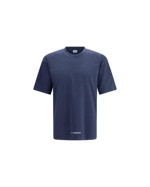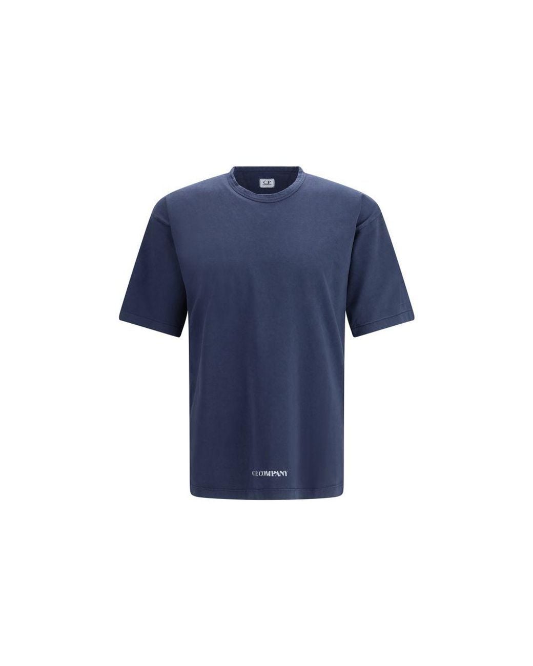 The crewneck T-shirt by C.P. Company is crafted from cotton and features a clean design enhanced by distinctive graphic details. It is designed with short sleeves and a comfortable fit, making it ideal for everyday wear. A print placed at the lower central front adds a contemporary accent, while the large print on the upper back creates a bold visual statement. A striking piece, perfect for a modern urban style. Season: SS26Fit: RegularComposition: 100% Cotton. Colour: blue
