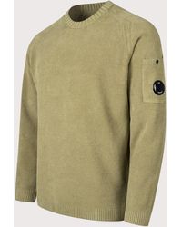 C.P. Company Men's Green Full Rib Crewneck Lens Jumper