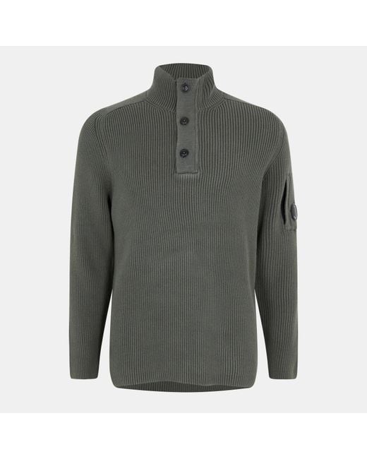 Men's Grey Quarter Button Knitted Turtle Neck Jumper