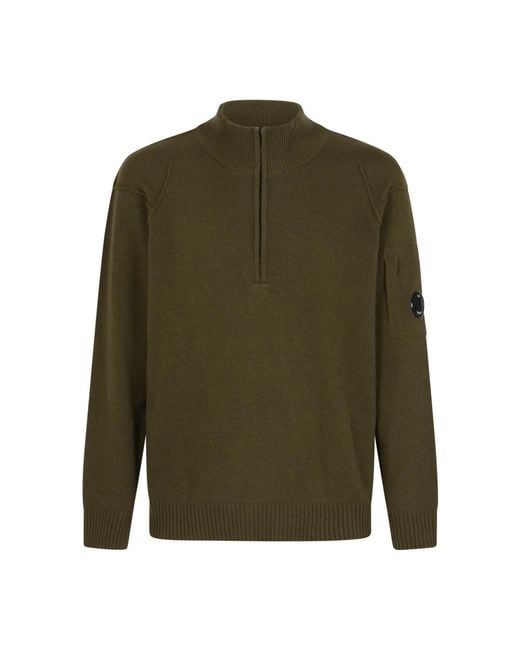 C.p. Company Knitwear Polo Collar is a lambswool half-zip jumper that combines a classic polo collar with a modern, relaxed silhouette—ideal for layering in cooler weather and smart-casual outfits. Key attributes: Green | Ivy green | Lambswool | Half-zip closure | Sleeve pocket | Polo collar | Ribbed cuffs and hem | Contrasting stitching | Pocket on sleeve with lens detail | Dimensions & fit: Regular fit | Straight cut | Composition & care: 80% wool | 20% polyamide | Hand wash; Do not bleach; Do not tumble dry; Iron at max 110°C without steam; Dry clean (tetrachloroethene, mild process); Flat drip dry in the shade; Remove detachable accessories before washing; Dry inside out. Colour: green