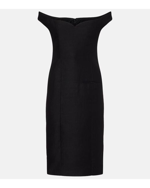Women's Black Bonny Wool And Linen-Blend Midi Dress