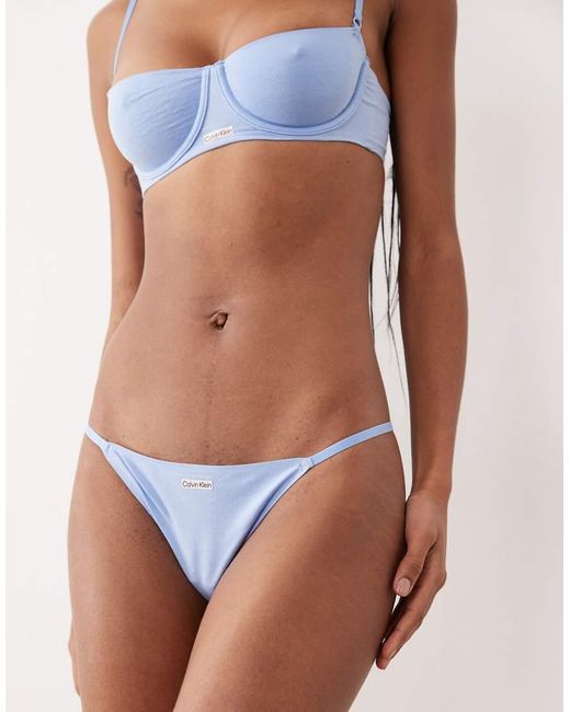 Women's Blue Cotton Modal Signature Seamless String Bikini Brief
