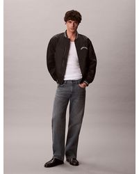 Calvin Klein Men's Black Cotton Varsity Bomber Jacket