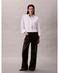 Calvin Klein Women's Black Faux Leather Straight Trousers