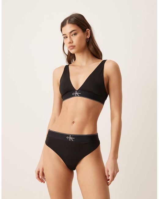 Lingerie & Nightwear by Calvin Klein Calvin Klein branded waistband Thong cut. Polyester/Elastane. Colour: black
