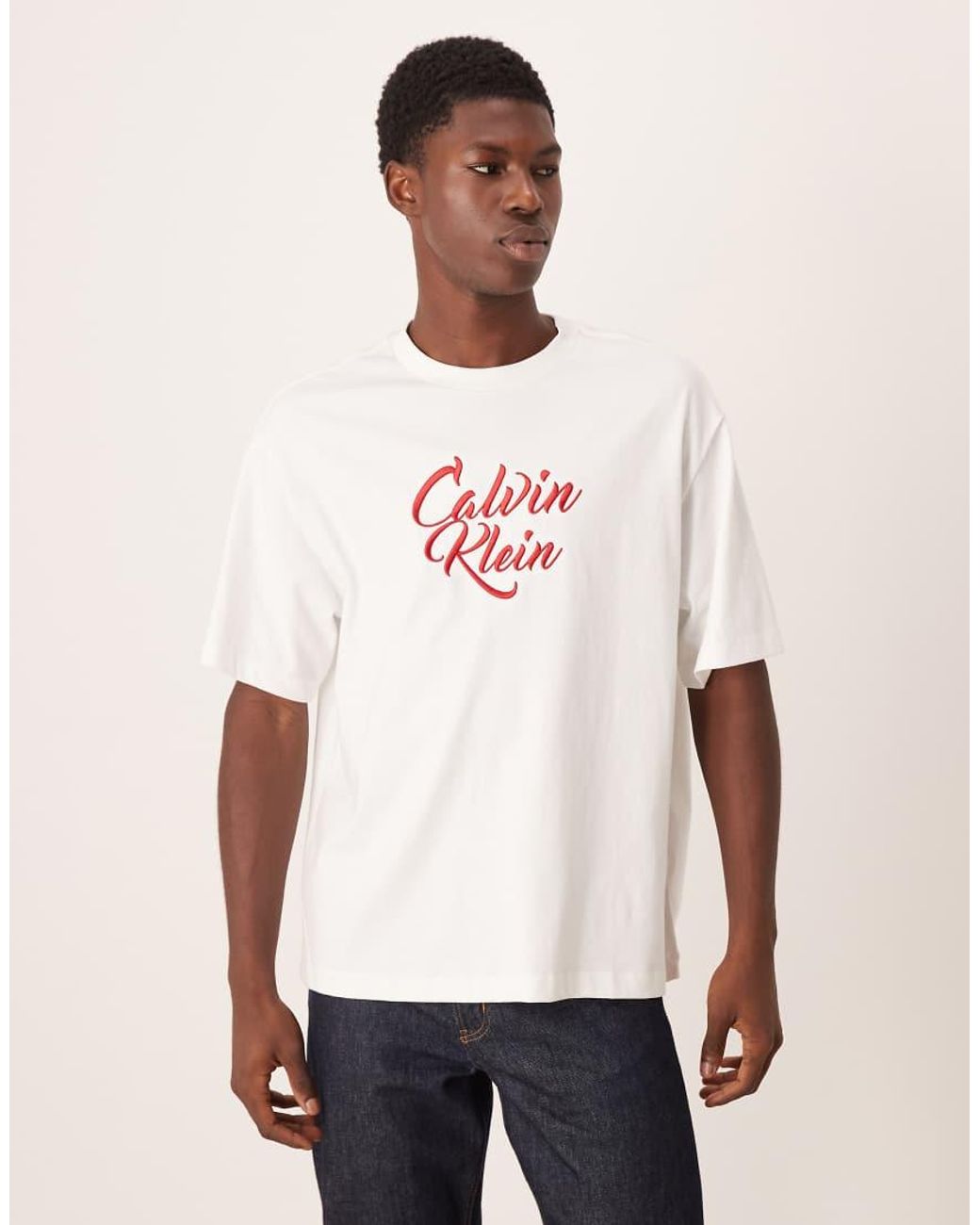 T-Shirts & Vests by Calvin Klein Jeans Crew neck Drop shoulders Short sleeves Calvin Klein script graphic embroidery on front Relaxed fit. Cotton. Colour: natural