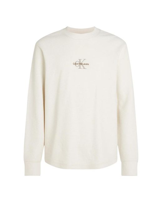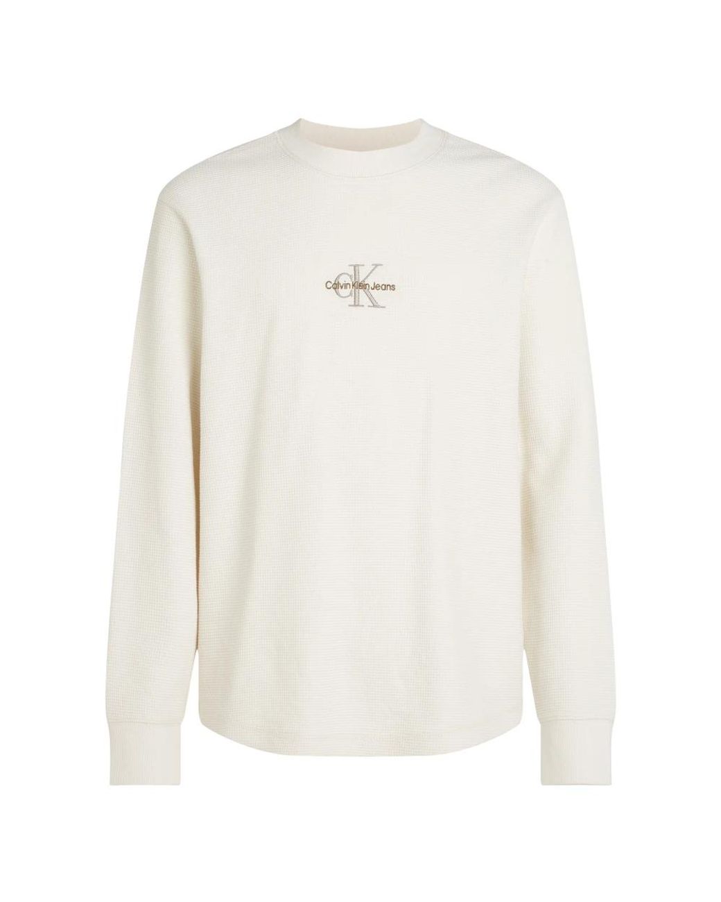 Elevate your everyday look effortlessly with this Calvin Klein long sleeve waffle t-shirt. Made from 100% cotton, this soft tee features a regular fit, ribbed cuffs, and a classic crew neck. Finished with the iconic monogram on the chest, it combines sophistication and style. Soft fit. Colour: white