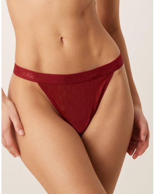 Lingerie & Nightwear by Calvin Klein All-over pattern Calvin Klein branded waistband Thong cut. Colour: red