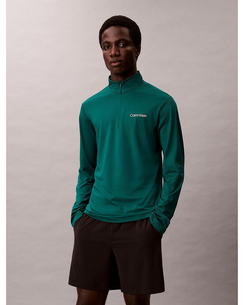 Men's Green Quick-Dry 1/4 Zip Long Sleeve Technical Top