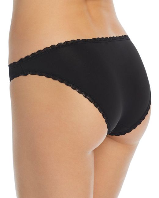 Fits true to size, order your normal size. Model measurements: 5'10" height, 33.5" bust, 23.5" waist, 34.5" hips, wearing a size small. Mid-rise. Elasticized waistband. Microfiber body, scalloped lace trim. Lined gusset. Style #qd3706. Self: 83% nylon/17% elastane. Machine wash. Made in india. Colour: black