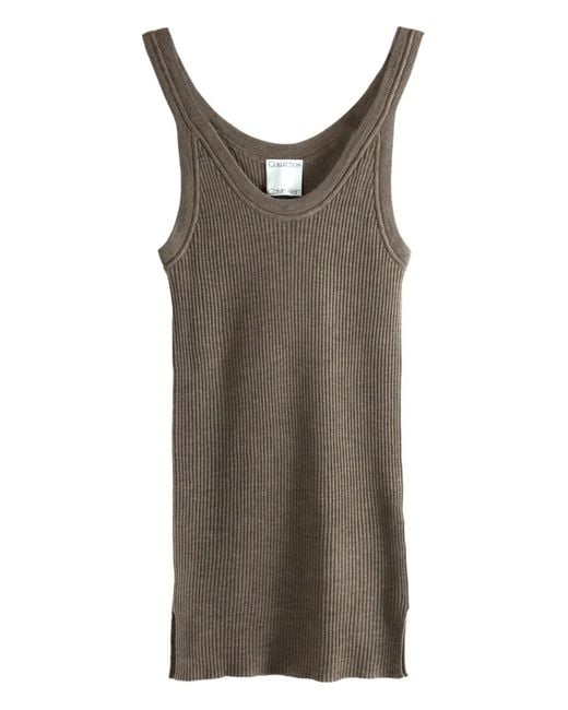 Women's Brown Ribbed Scoop-Neck Tank Top
