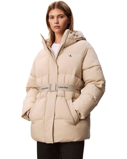 Women's Natural Jeans Belted Midweight Puffer Lv047d507g Jackets
