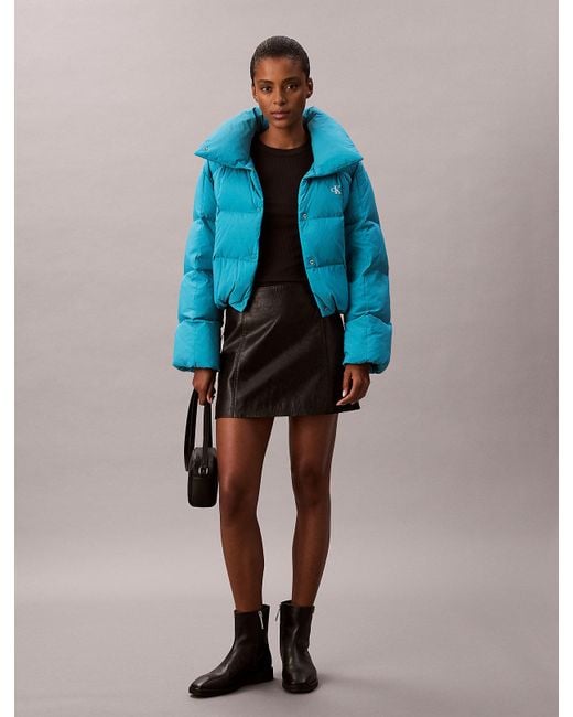 Women's Blue Short Down Puffer Jacket