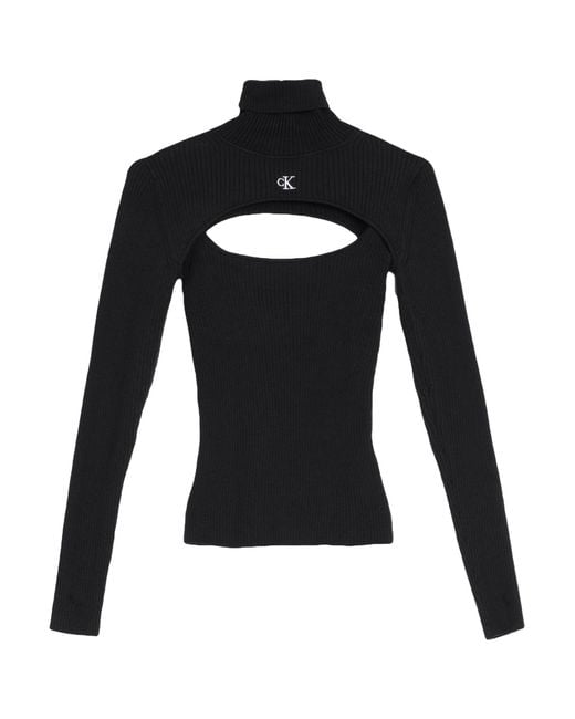 CALVIN KLEIN JEANS. knitted, lightweight knit, ribbed, stretchy fabric, brand logo, embroidered, plain colour, turtleneck, long sleeves, without pockets. 80% Cotton, 17% Polyamide, 3% Elastane.