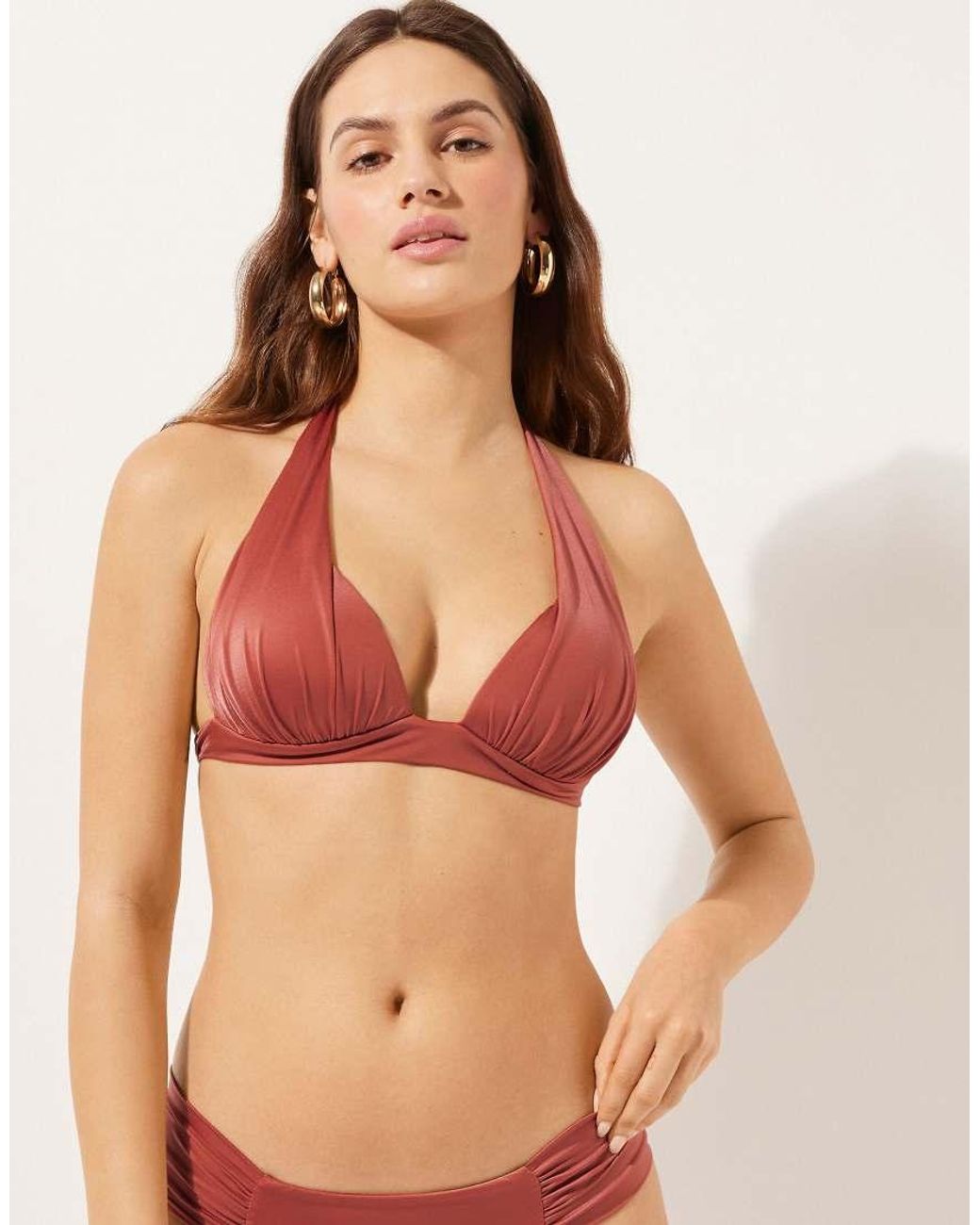 - Calzendonia Padded Triangle Bikini Top Shiny Satin