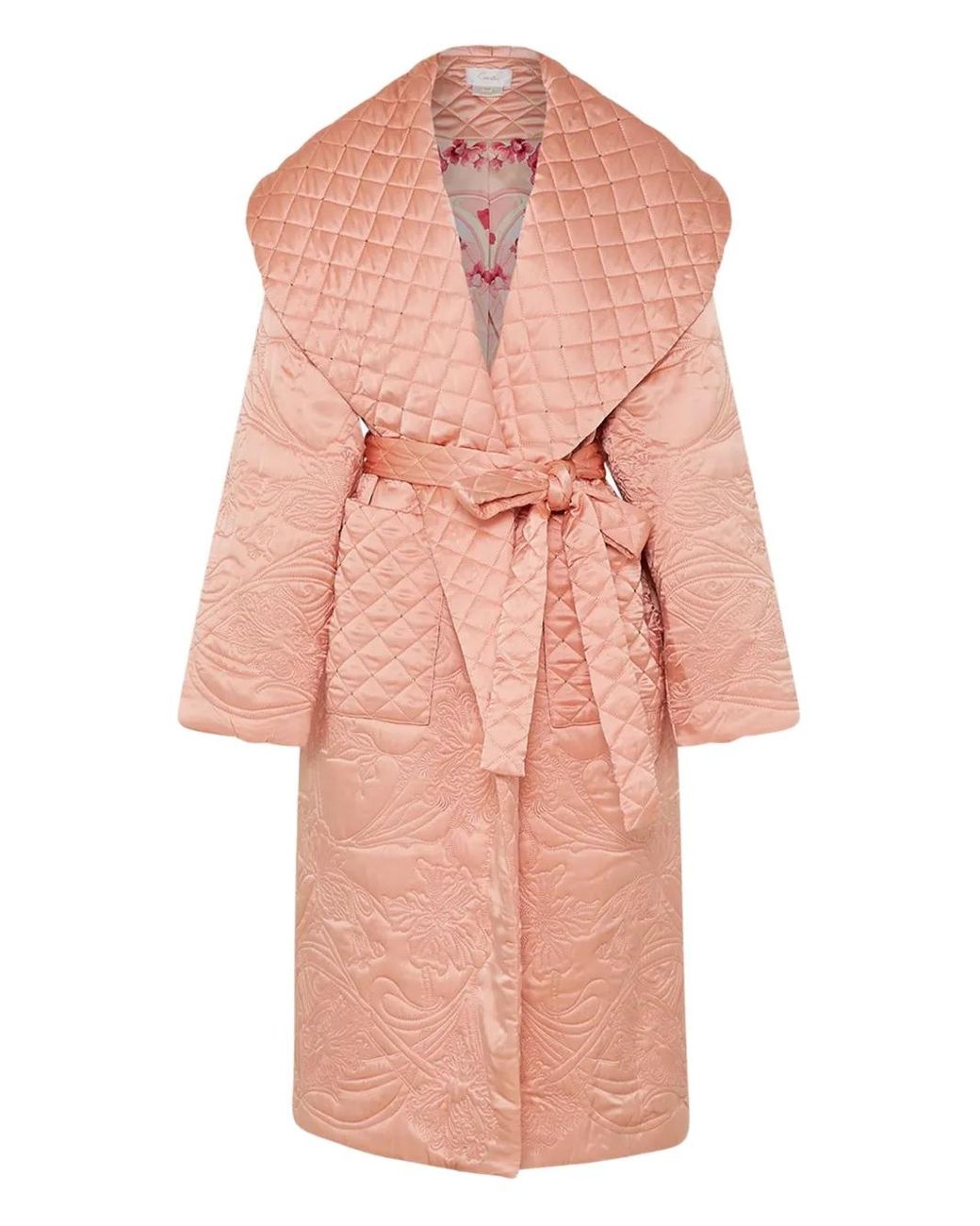 Quilted Long Wrap Coat Blossoms And Brushstrokes - Pink