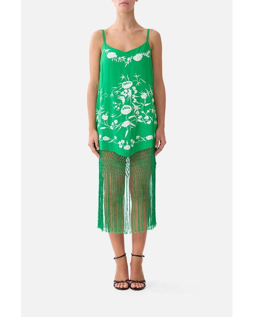 Women's Green Relaxed Mini Dress With Fringing Sacromonte Señorita