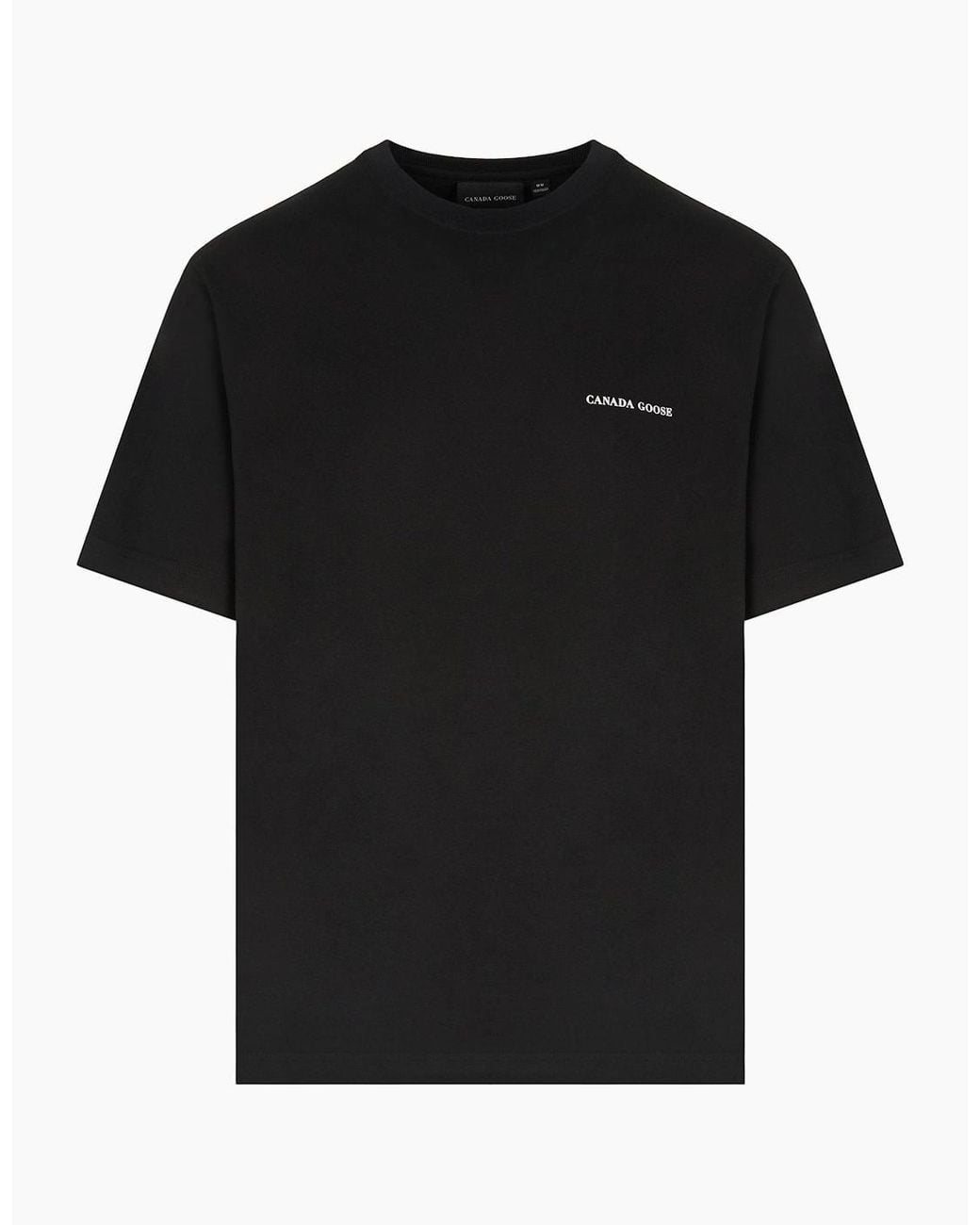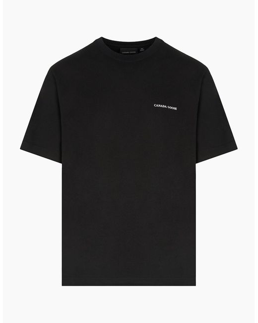 Brought to you by Canada Goose, this t-shirt is crafted from comfortable cotton. Featuring, short sleeves, straight hem and finished with the signature Canada Goose branding to the front and backColour: BlackComposition: 100% CottonCare: Machine Wash OnlyFit: Relaxed fitFeatures:BlackCrew neckShort sleevesStraight hemSignature Canada Goose print to the frontSignature Canada Goose print to the rear