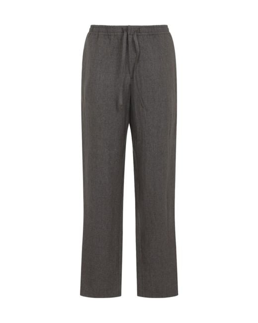 Impeccabile Charcoal Wool Flannel Drawstring Chino Trousers - Blue
