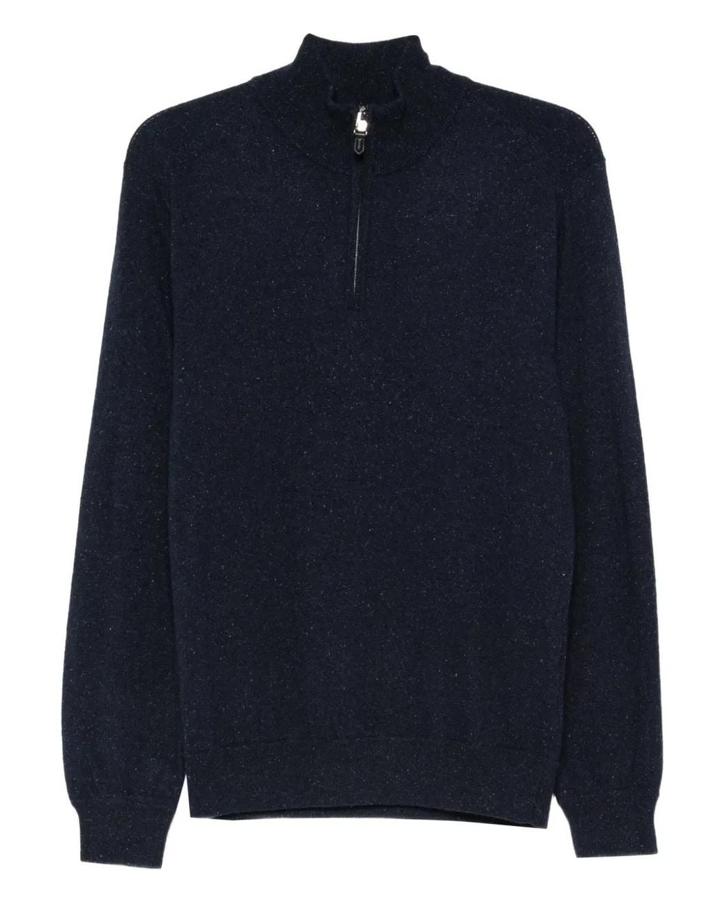 Dark blue half-zip fastening long sleeves ribbed cuffs speckled effect Size: 52. Gender: Male. Material:Viscose/Wool/Silk/Polyamide. Colour: blue