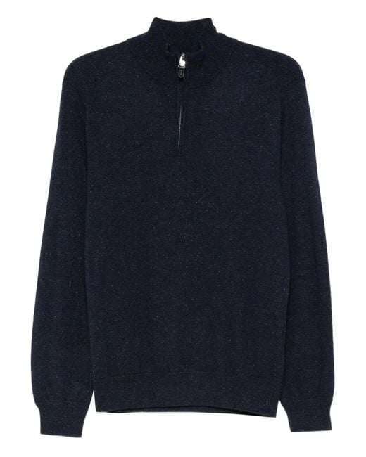 Men's Blue Half-Zip Speckled Jumper