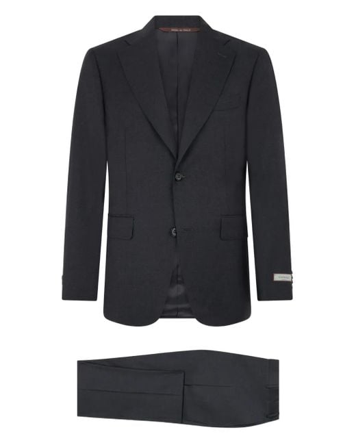 Blue single-breasted jacket two-button fastening notched lapels two front flap pockets chest pocket belt loops on the trousers Size: 48. Gender: Male. Material:Wool. Colour: blue