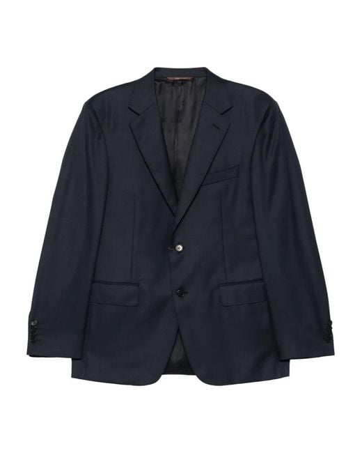 Dark blue two-button fastening flap pockets tailored fit Size: 58. Gender: Male. Material:Cupro/Wool. Colour: blue