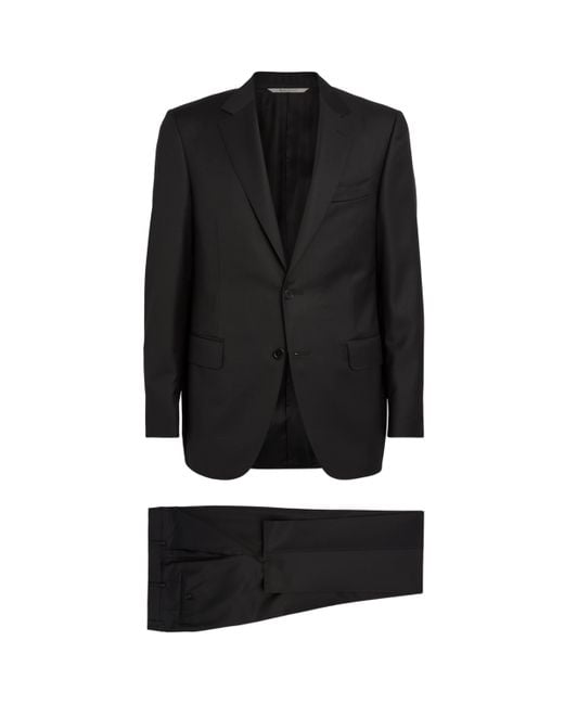 Infuse your smart repertoire with refined sophistication courtesy of Canali's twill suit. Italian-crafted from the finest wool, it hosts classic detailing including notched lapels, a chest pocket and a double-vented hem. Complete the look with a crisp cotton shirt and polished shoes. Colour: black