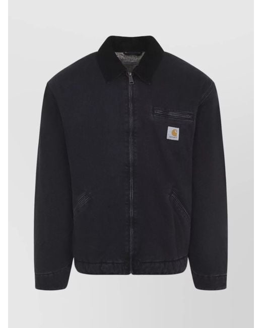 Men's Blue Cotton Velvet Collar Zip Lightweight Jacket