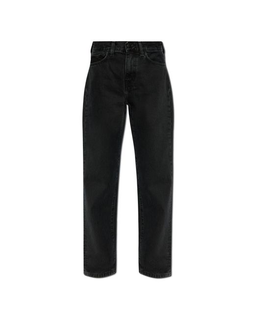 appeals to European streetwear enthusiasts. WHY BUY THIS PRODUCT? * Elegant, timeless design with straight legs. * High waist ensuring a classic look. * Durable fabric without stretch, guaranteeing a traditional fit. * Subtle Carhartt logo highlighting the brand's prestige. * Functional five pockets, fastened with a zipper and button. Colour: black