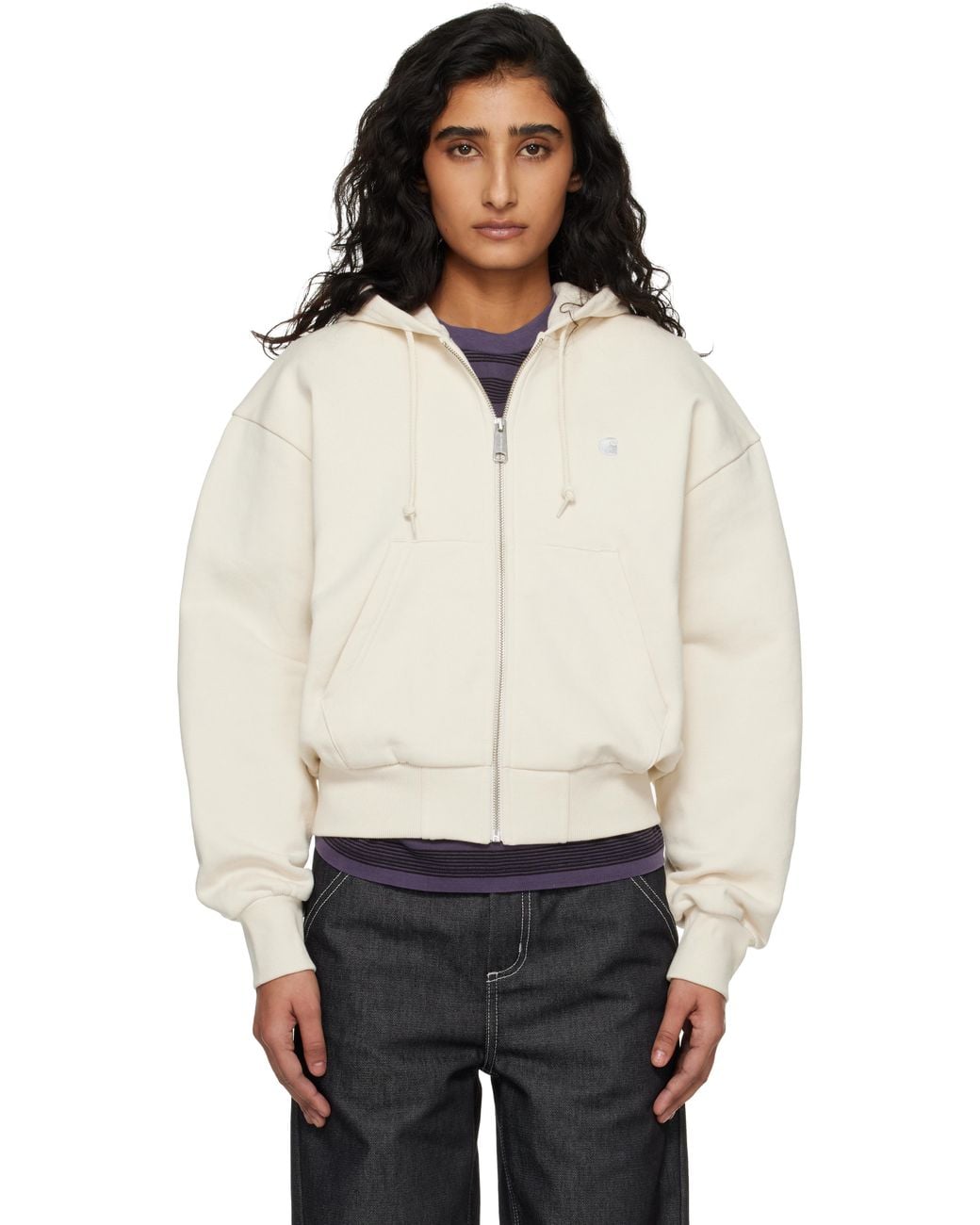 Heavyweight 12.3 oz cotton fleece hoodie. · Drawstring at hood · Zip closure · Logo embroidered at chest · Patch pockets at waist · Rib-knit hem and cuffs · Dropped shoulders Supplier color: Cinnerus/Silver