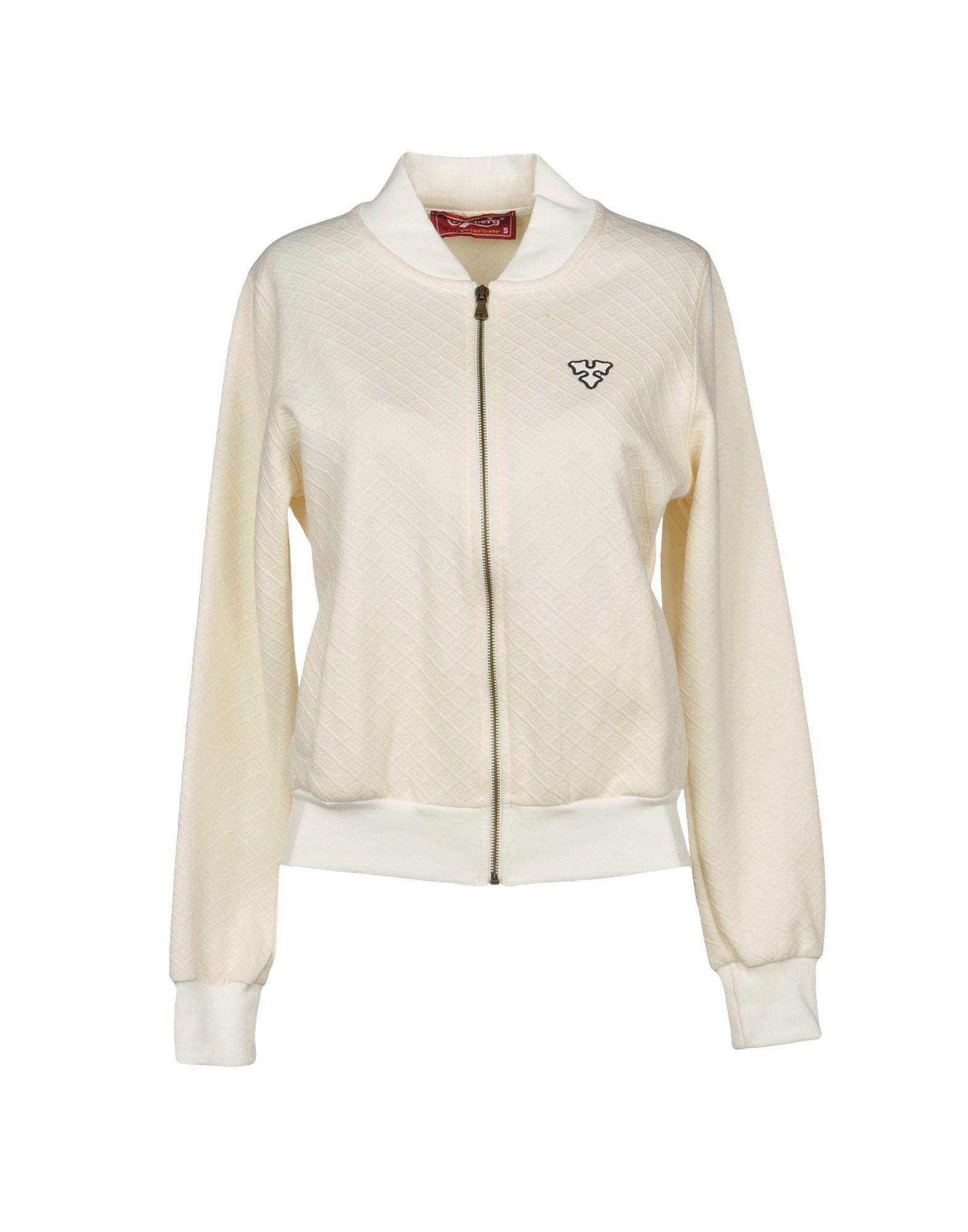 Jersey Contrasting applications Logo Solid colour Round collar Long sleeves Front closure Zip Multipockets Small sized. Colour: white