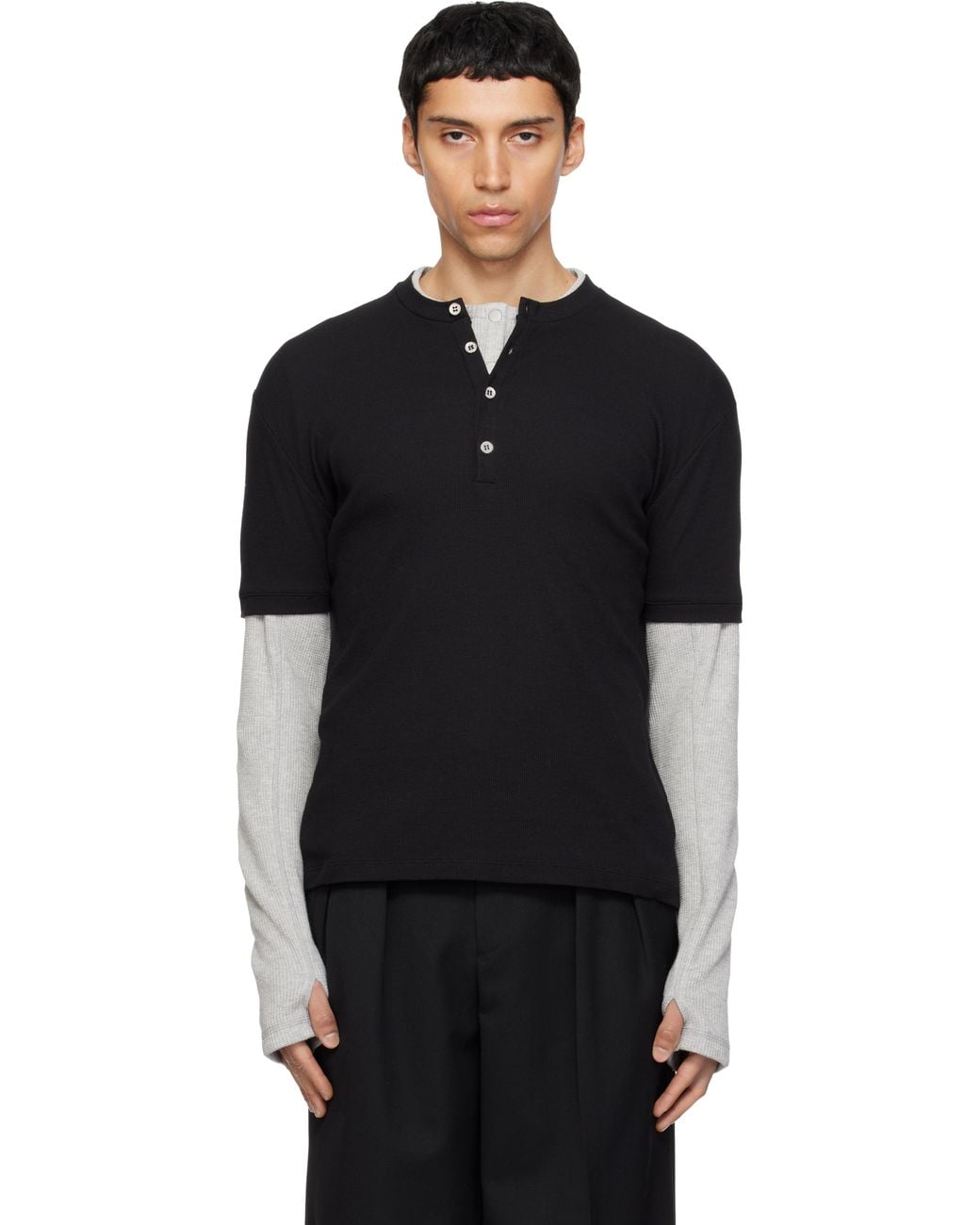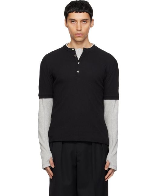 Stretch modal- and cotton-blend ribbed jersey henley. · Crewneck · Four-button placket · Logo flag at side seam Supplier color: Black Colour: black
