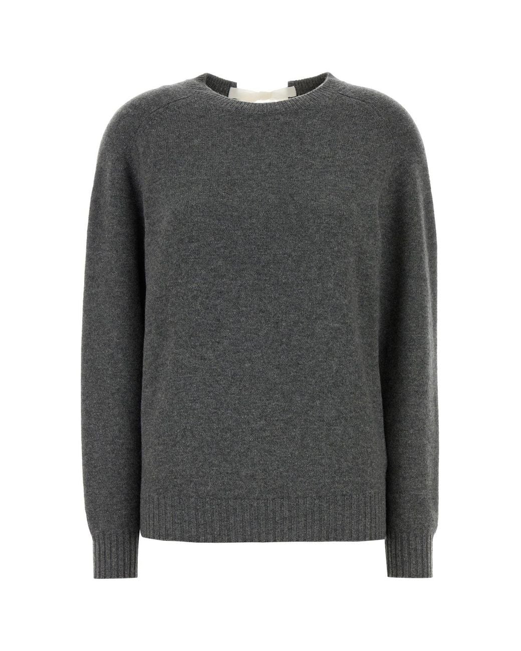 Jumper realized in pure cashmere characterized by laces to tie at the back. Ribbed crew-neck, cuffs and hemline. Loose fit. Colour: grey