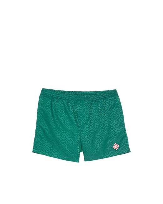 Casablanca Monogram Jacquard Swim Shorts combine the house’s signature monogram jacquard with a comfortable elasticated waistband and drawstring. Designed for pool and beach wear, they offer a refined look with functional swim-ready details. Key attributes: Green | Polyester | Technical swim fabric | Elasticated waistband with internal drawstring | In-seam pockets | Mesh lining | Monogram jacquard pattern | Logo patch | Dimensions & fit: Relaxed fit | Composition & care: 100% polyester | Delicate machine wash. Colour: green