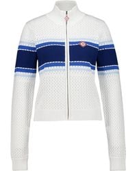 CASABLANCA Women's Blue Knit Jacket High Neck Perforated Pattern