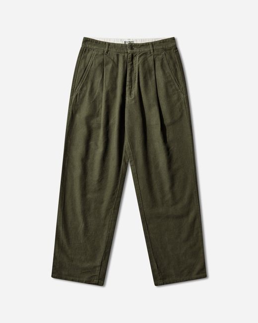 Men's Green S Brushed Soft Cotton One Tuck Trousers
