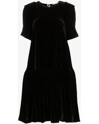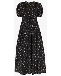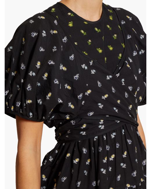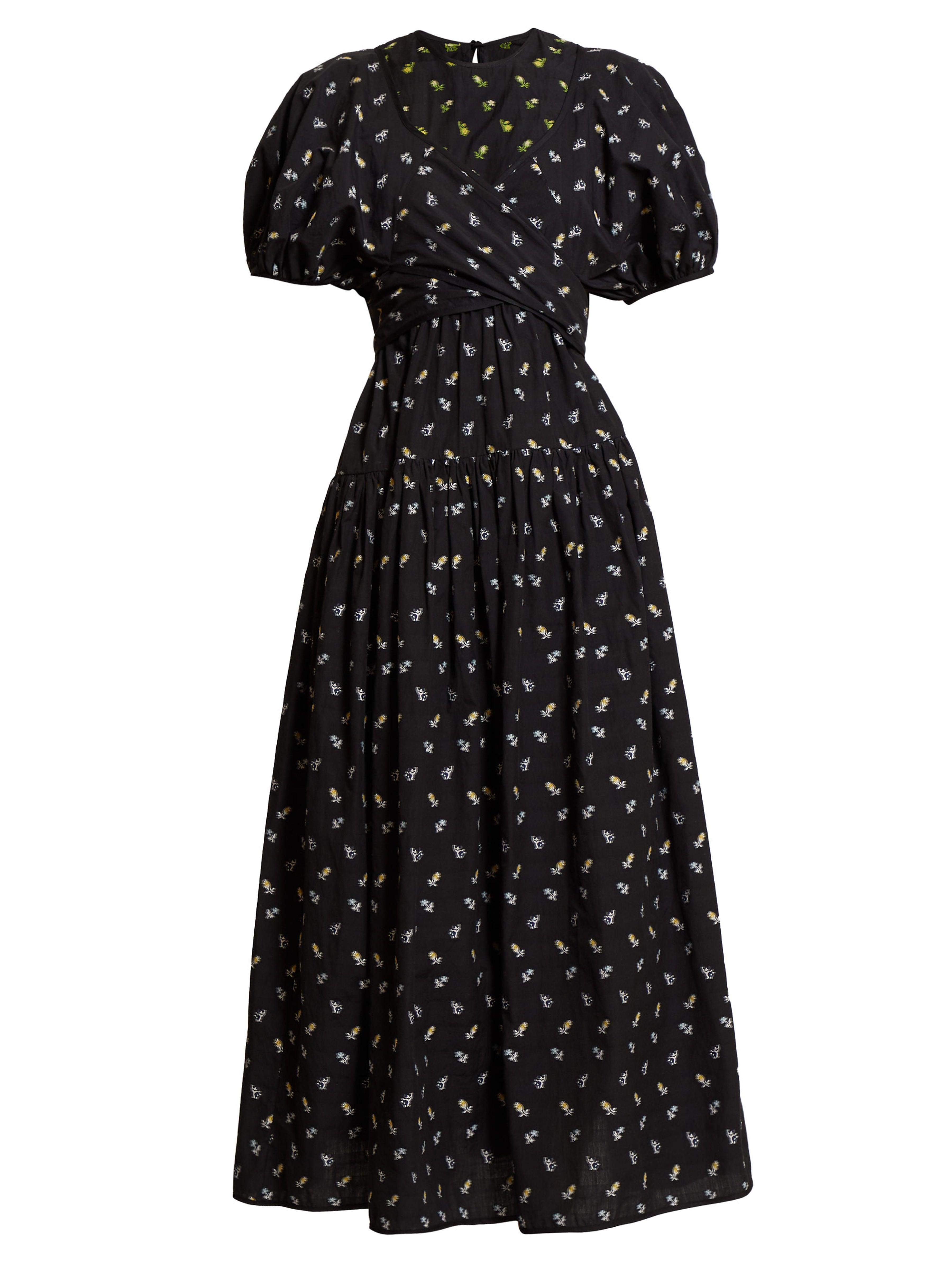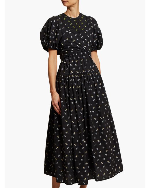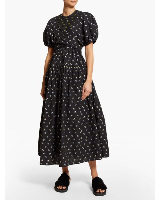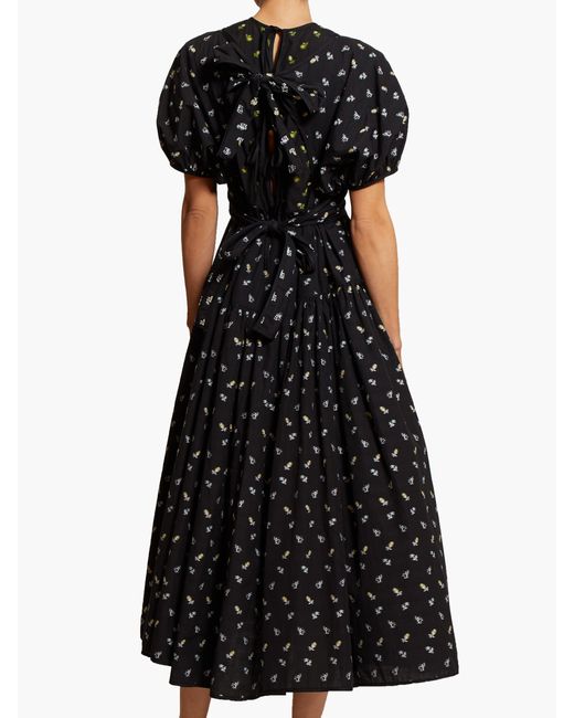 Cecilie bahnsen - cecilie bahnsen's pre-aw19 collection is bedecked with micro florals and bows, demonstrated by the black anna midi dress. Playing with structure, it's shaped for a relaxed fit and features sculptural accents throughout and a layered wrap-around bodice that ties across the back allowing a custom fit. Balance the bold form with pared-back sandals, for a considered dinner edit. 100%cotton. Colour: black
