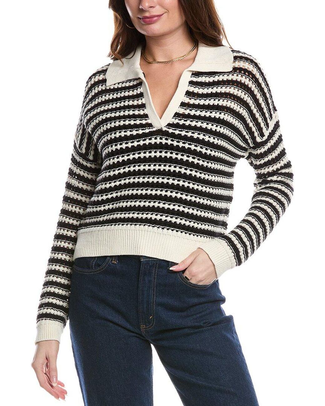 Color/pattern: black Approximately 22in from shoulder to hem Model is 5'9 and is wearing a size small. Measurements may vary slightly by size. Design details: open knit, spread collar, dropped-shoulder sleeves and ribbed trim 100% cotton Hand wash Imported Colour: black