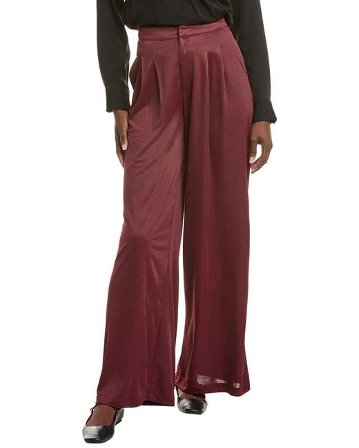 Color/pattern: purple Inseam approximately 29in; 15in rise Model is 5'10 and is wearing a size small. Measurements may vary slightly by size. Design details: elastic waist, pleated front, and side pockets Zip fly with slide tab closure 100% polyester Hand wash Imported Colour: red