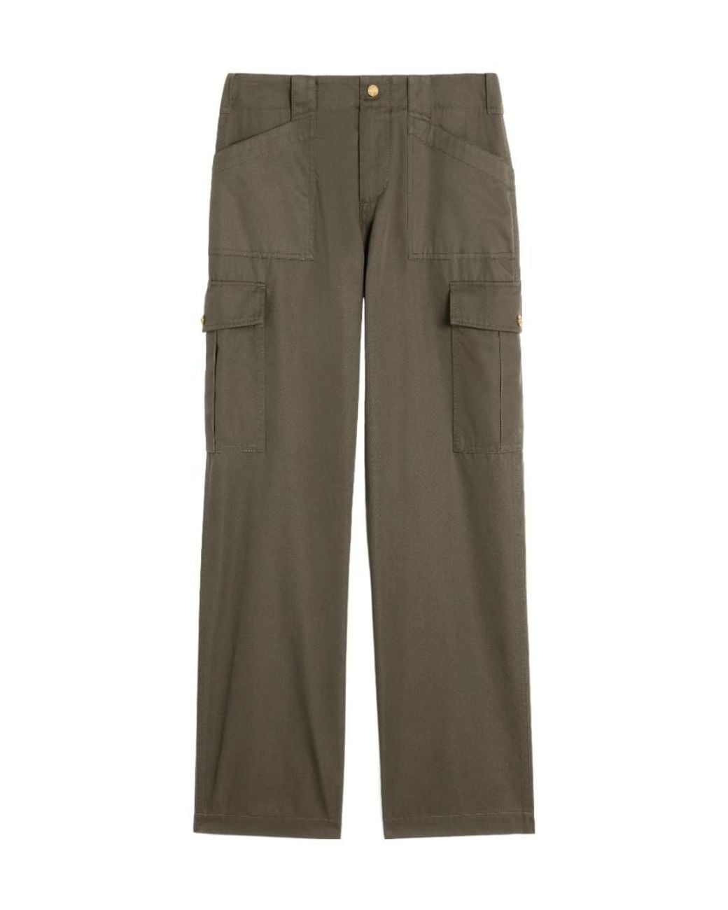 Loose version Middle waist There are two patch bags on both sides. 2 flip pockets for trouser legs, decorated with TRIOMPHE buckle TRIOMPHE push button and zipper Colour: green