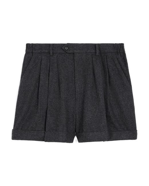 Triple-pleated shorts in flannel DETAILS 100 WOOL classic fit mid-rise 2 side pockets 2 welt pockets with horn button on the back 3 pleats zip and hook-and-eye closure made in Italy Reference 2P877095D 10AN Colour: black