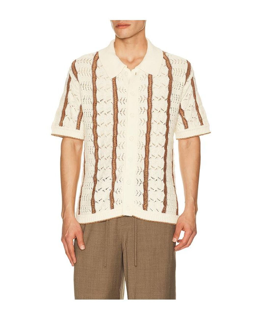 Men's Natural Novelty Stitch Button Down Shirt