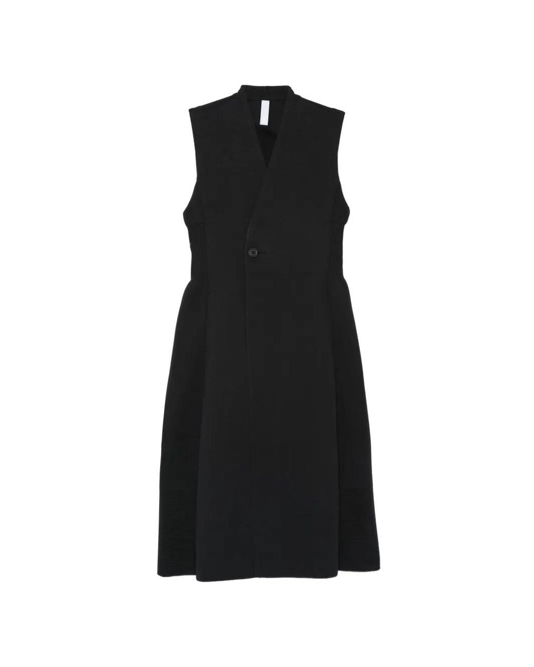 Black single-breasted V-neck ribbed detail sleeveless Size: 1. Gender: Female. Material:Recycled Polyester.