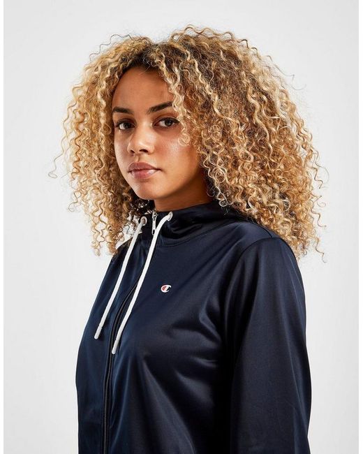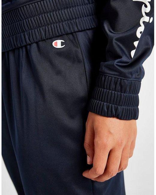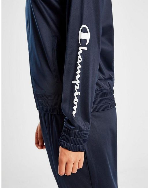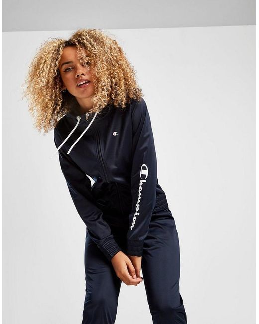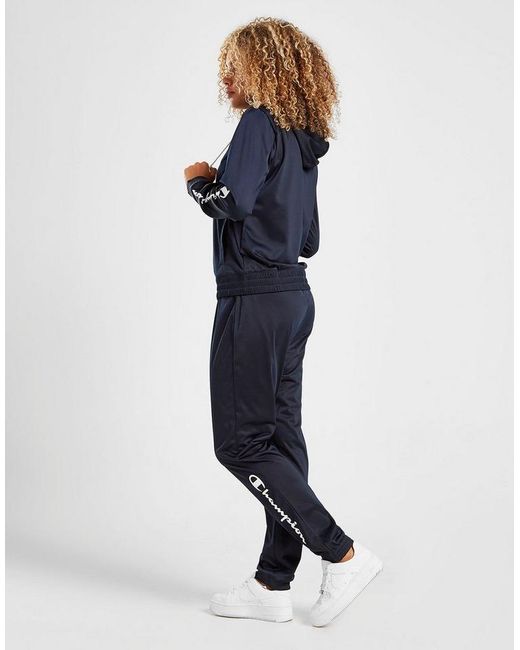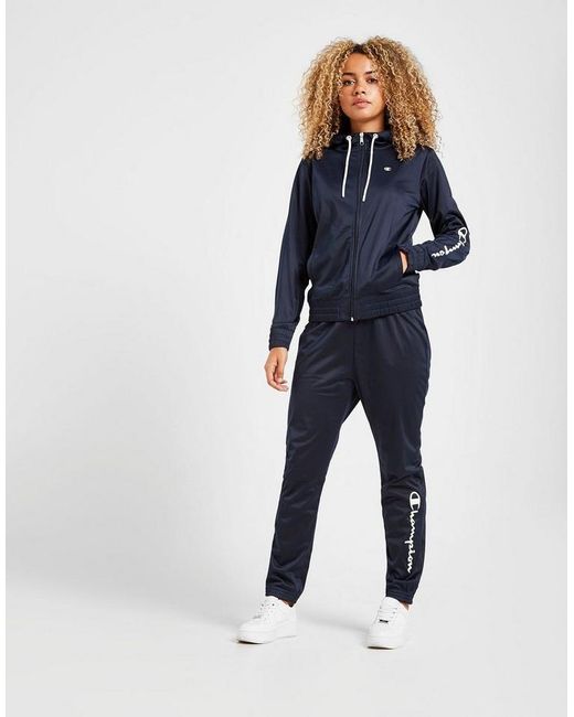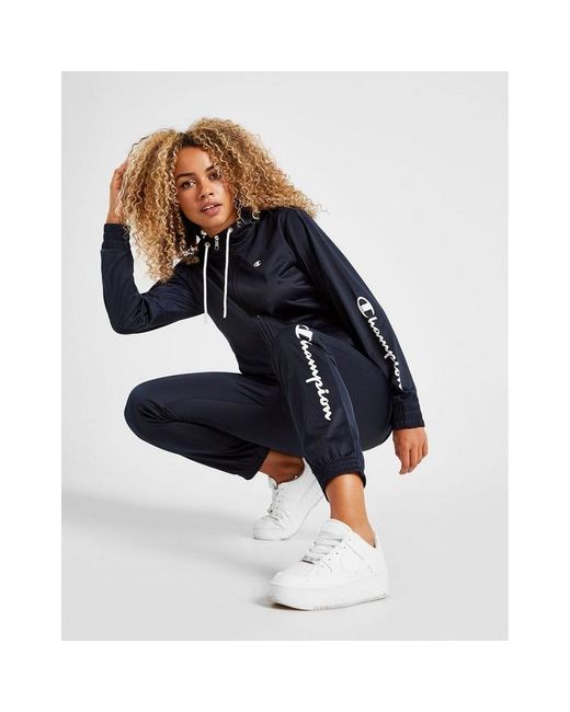 Get a premium laid-back look for the weekend with this women's Script Logo Tracksuit from Champion exclusive to JD. In a smart navy colourway, this regular-fit tracksuit is made from soft poly which keeps you covered and feelin' comf'. The track top has a full front zip along with side pockets and a mock neck, while the matching track trousers have ribbed trims for the perfect fit. A fresh spin on a retro look, this tracksuit is finished with contrasting Champion branding to the sleeve, lower leg, and chest. Machine washable. Our model is 5'8" and wears a size 8. Material: 100% Polyester. Colour: blue