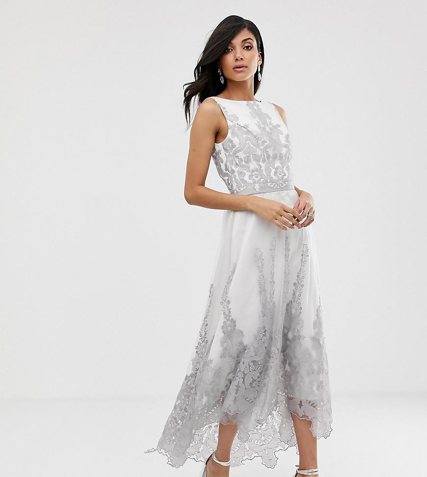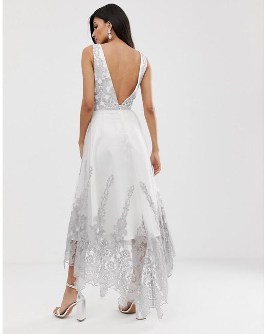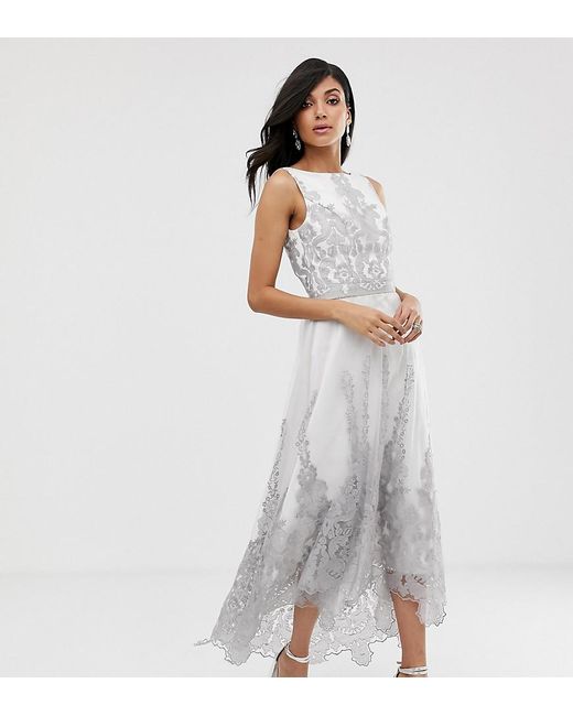 Tall dress by Chi Chi London, For that thing you have to go to, High neck, Silky feel lining, Sheer overlay, Fitted waist, Dipped hem, Low V back, Zip fastening, Hook-and-eye detail, Regular fit, Just select your usual size. Big event on the agenda? We've got three words for you - Chi Chi London. The ultimate dress destination, our edit of the brand's dresses, heels and clutch bags ticks all the boxes on your party checklist. Prom queens and bridesmaid squads, we've got you. Polyamide/ silk. Colour: white