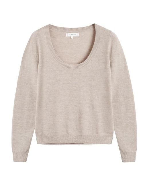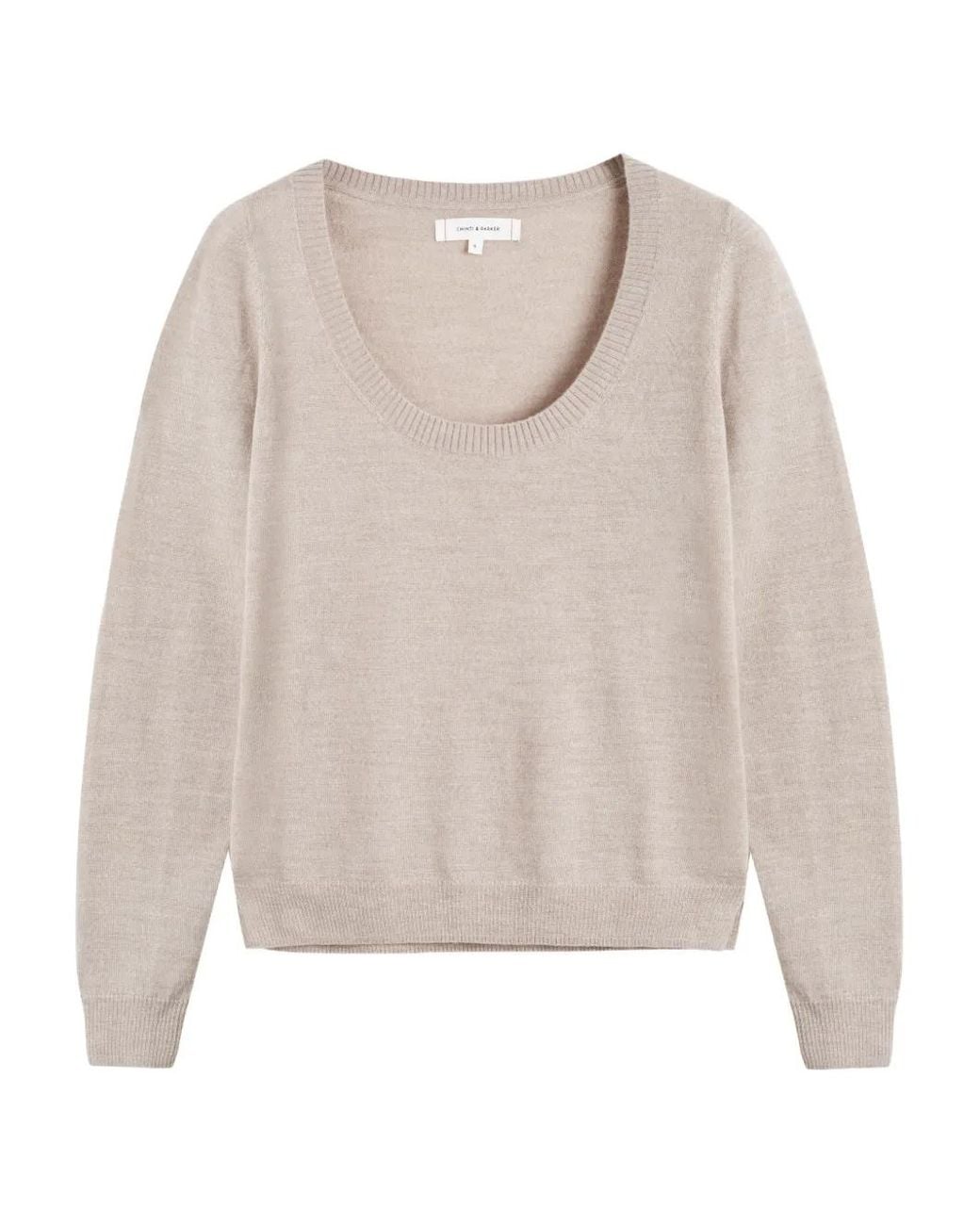 Oatmeal scoop neck ribbed hem and cuffs long sleeves Size: XS. Gender: Female. Material:Merino. Colour: natural