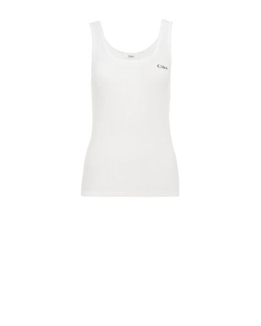 Chloé Logo Embroidered Ribbed Tank Top - White